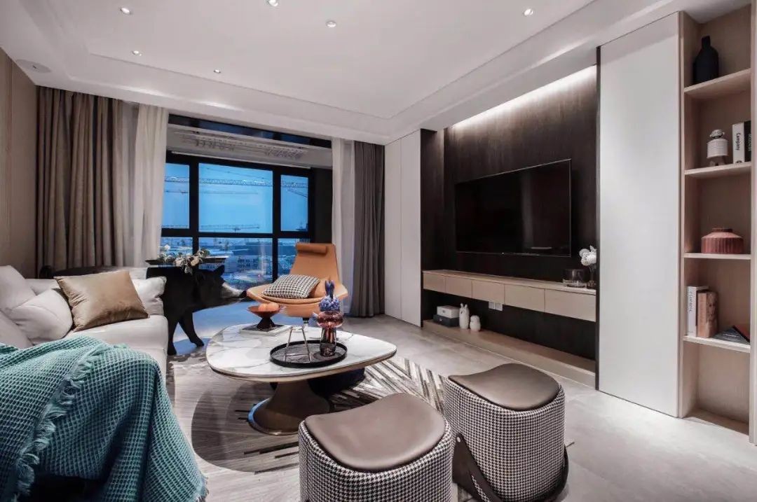 这是一套大概120平米的装修案例,整体空间以现代风的风格搭配,加入沉稳端庄的家具与配色