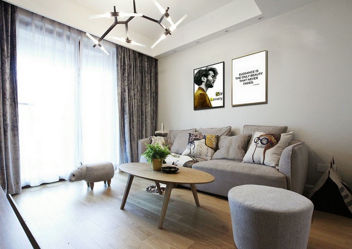 浅灰色棉麻沙发坐感十分舒服,搭配酷酷的装饰画十分醒目。
