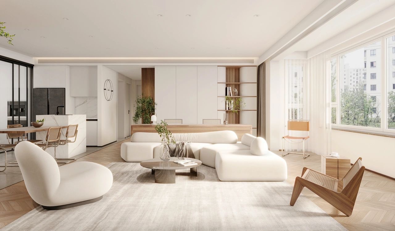 浅色的色彩设计,让客厅温馨明亮。