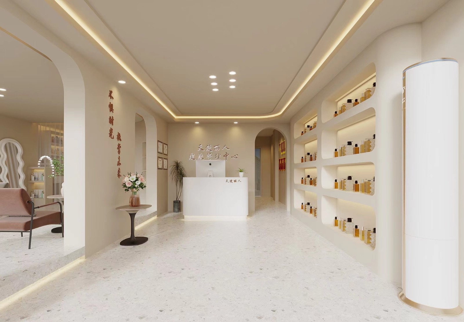 前台需要接待区和产品展示区