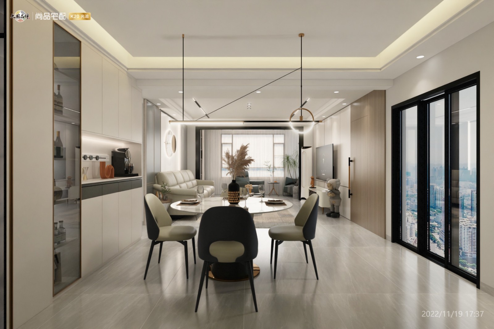 柜体侧开放设计,搭配美家背景墙