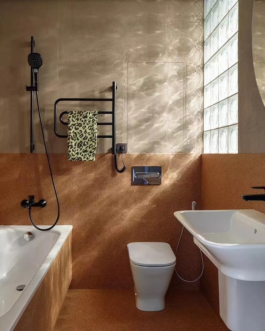 这间公寓最特别就是使用玻璃块作为空间之间的隔断,但所有其他的设计都是“家具”。卧室与起居室由一个架子隔开,解决了进入自然光的问题。