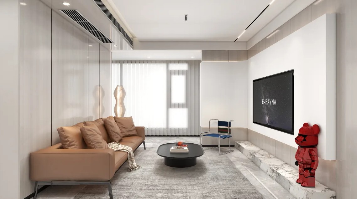 客厅吊顶无主灯的设计,电视背景墙运用木饰面板