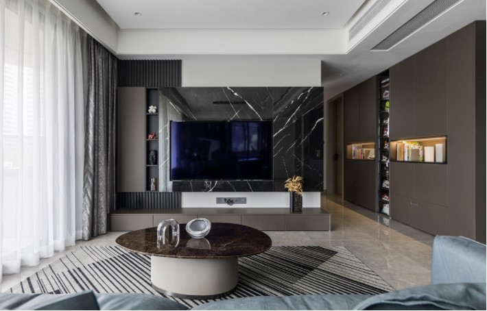 胡桃木色的拼接木饰面,简约而富有层次感。