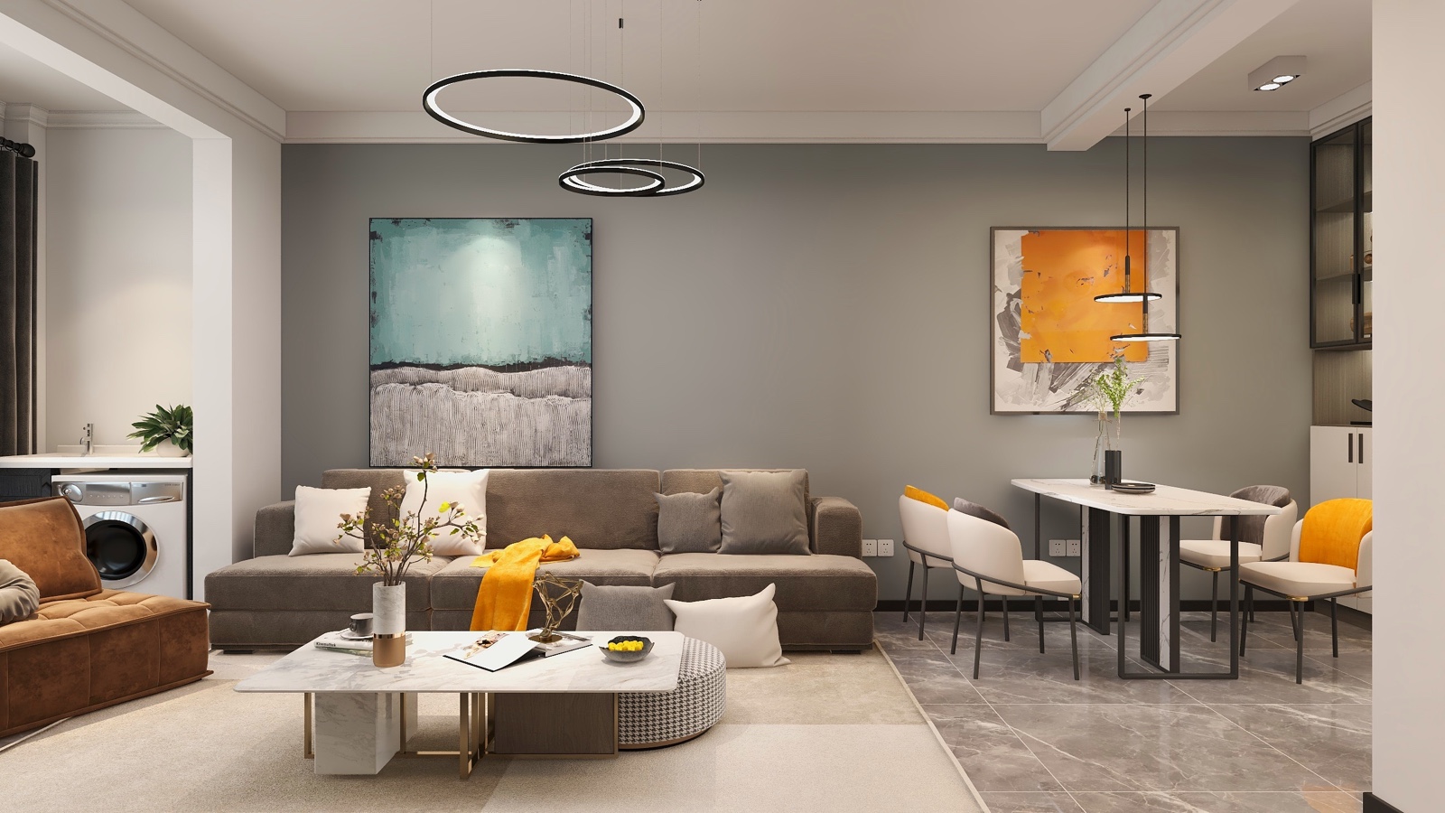 以现代简约理念为主,全房乳胶漆,背景墙局部调色