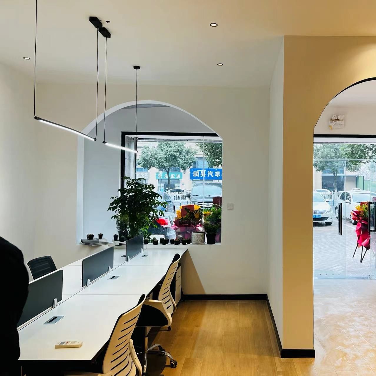 玄关处去掉了传统的接待台设计,采用的开放的空间设计