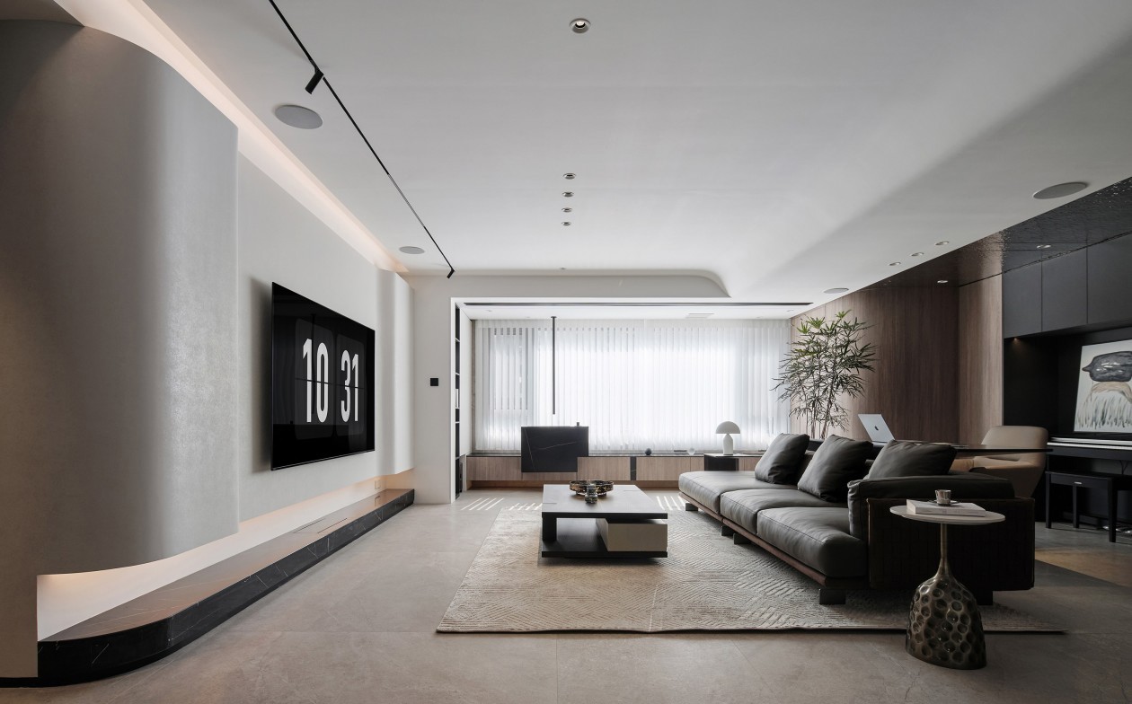 客厅以多层次色彩,多层次的功能区构成丰满、简约的空间