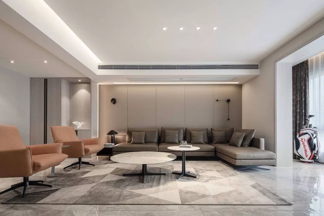 客厅整体以素简为主,简单的色彩作为跳色让空间鲜活而真实,在追求整体美观性的同时,又兼顾最切实的收纳,在设计装饰墙面上,设计深蓝色木纹柜,以让空间两者兼顾。