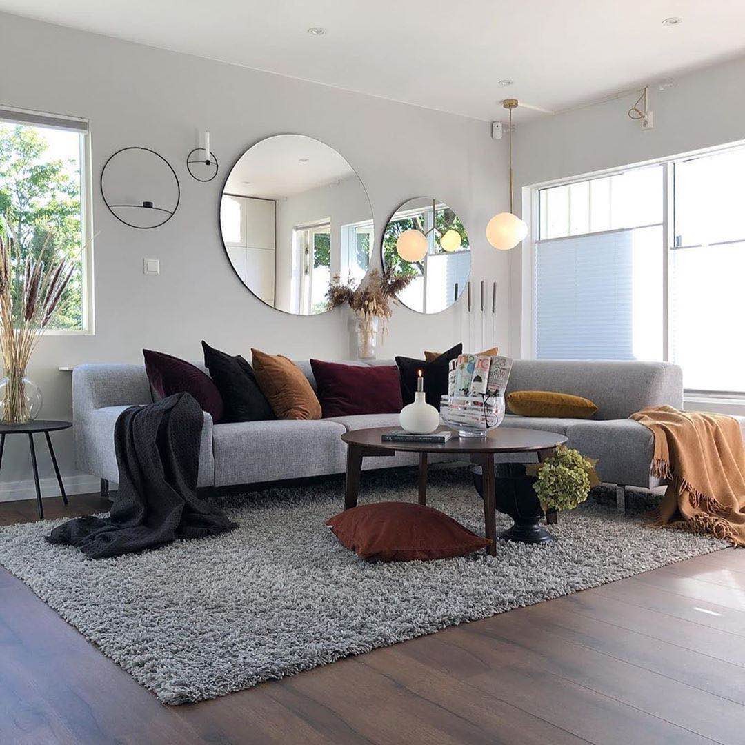 客厅得采光很好,除了有一个大尺寸的窗户外还因为白色的墙面反射更强以及两面圆形的镜子,它显然不是为了照,主要的作用是从视觉上将空间放大,并且让房间显得更通透。 沙发选择了"L"形的布艺沙发,安安静静的立在那,感觉看着它,在乱世中浮躁的心就沉静了下来。长毛地毯看起来柔软舒适。