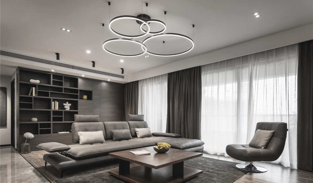 客厅空间内长线条的运用和设计,不仅凸显出简约的美感,当木质家具的温雅,包容个性低调的金属,大理石的冷峻碰撞木地板的温暖,理性与柔美以融合之态散落在空间的每一处,空间的立体之感更加凸显。