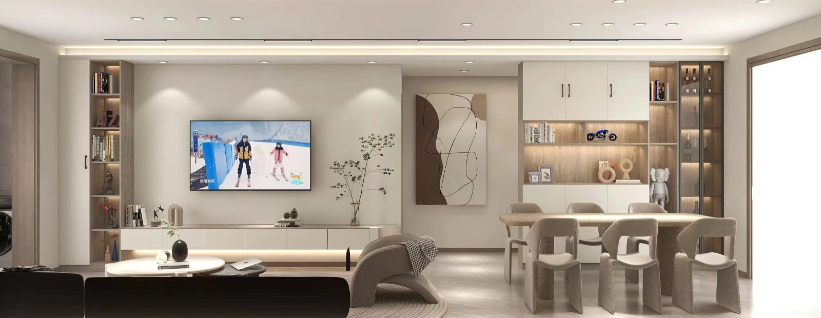 客厅采用智能灯光根据季节调节自己需要的色温,幸福感满满。