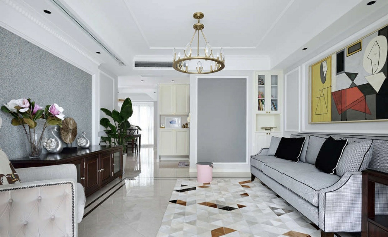 设计师兼顾颜值和实用性,利用暖灰色做主色调,营造低调安静的氛围,搭配饱和度较低、颜值高的家具,打造时尚雅致的感觉