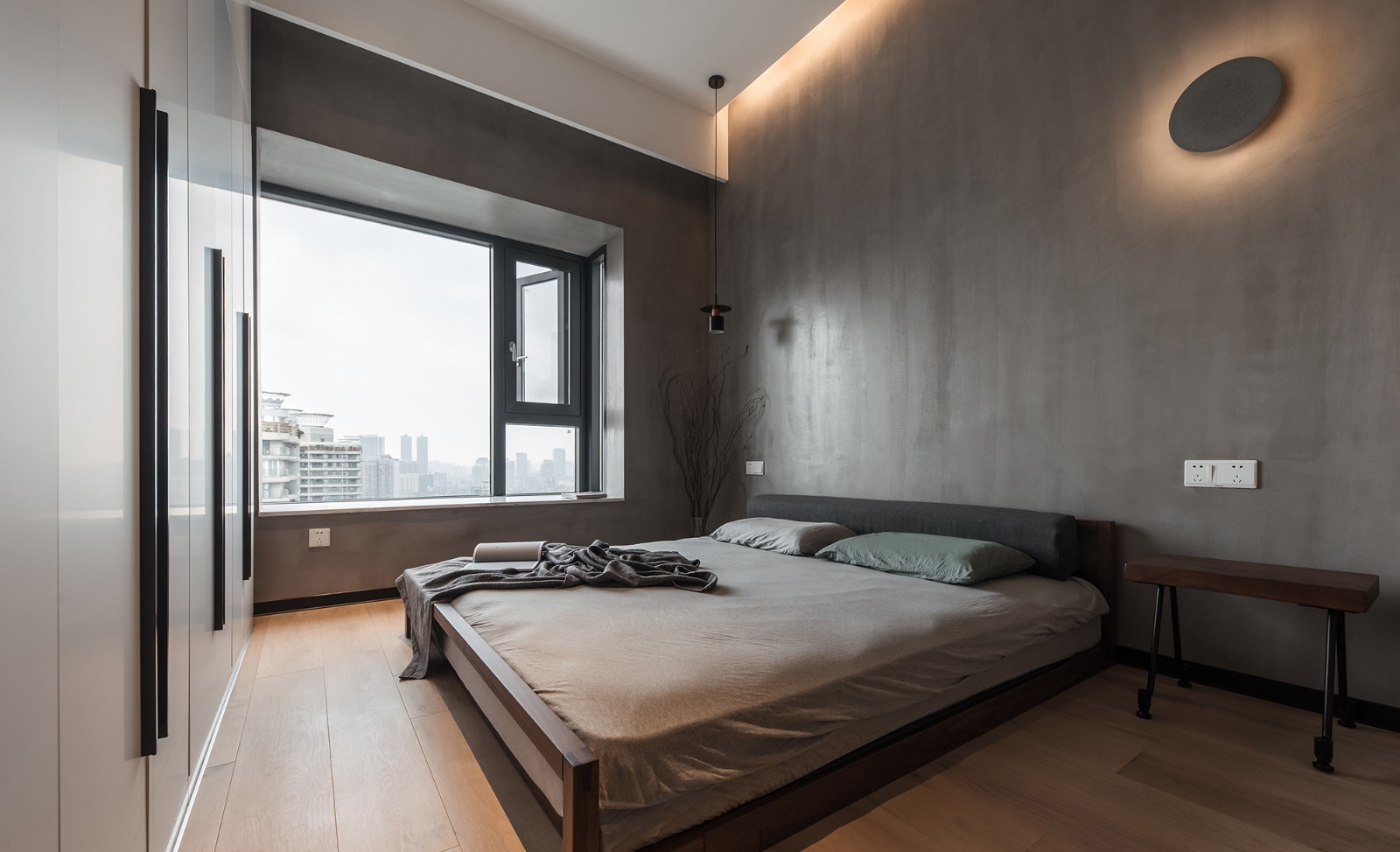 墙面刷的艺术漆,给人一种特别的感觉,其他采用了极简风设计