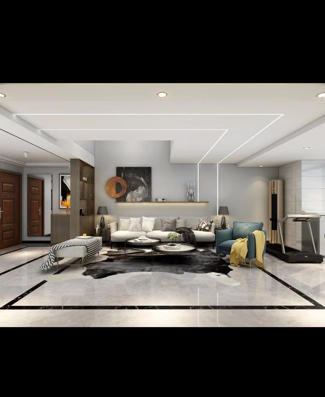 整体以浅灰色为基调,搭配轻奢质感的家具