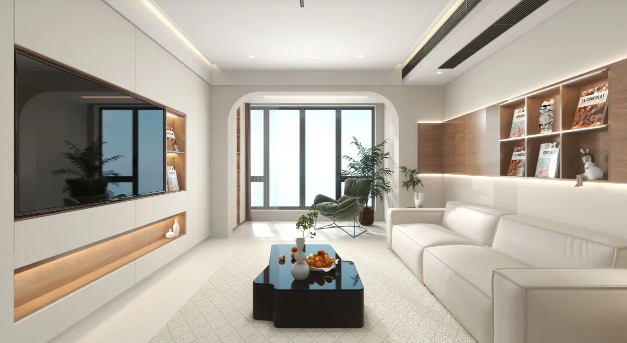 客厅大面积留白配合落地窗,安静明亮,采光非常好。