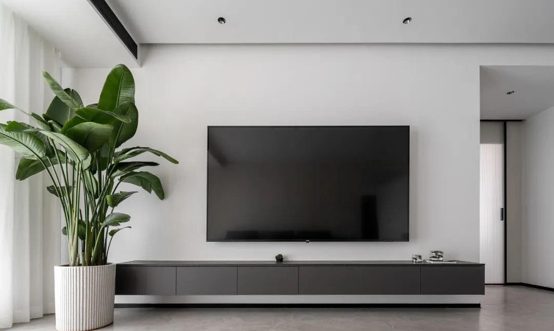 极简的悬浮电视柜与绿植的春意盎然做搭配,简约***