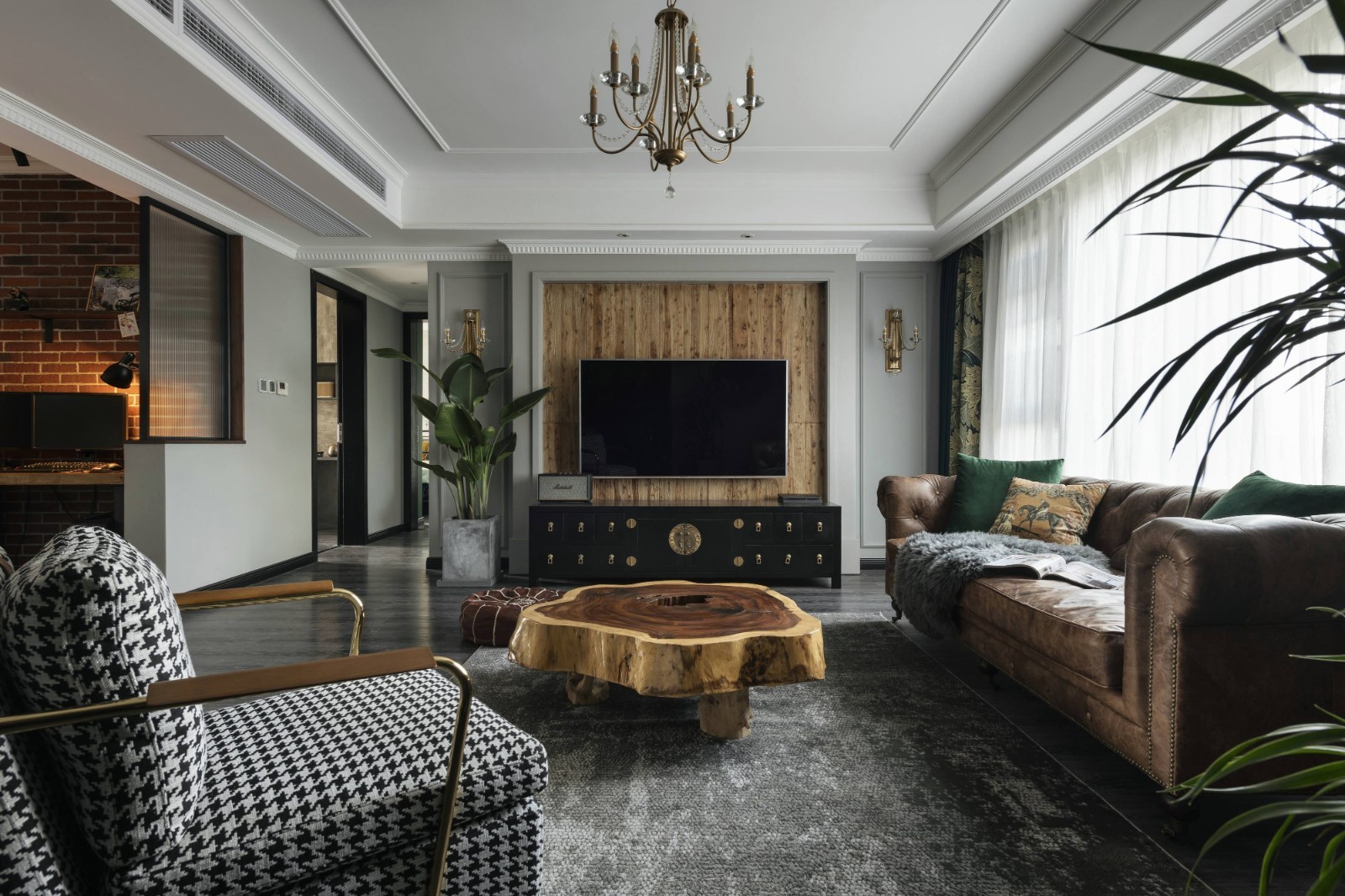 转换空间画面的同时,随着光影变化,让空间更具沉稳