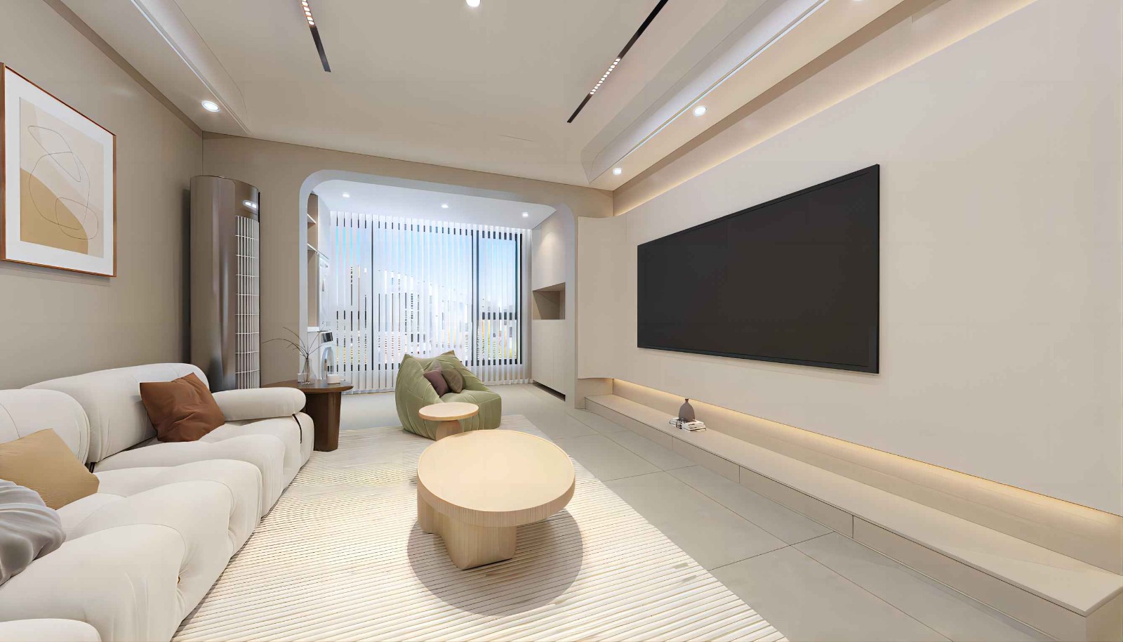 三房改两房在空间上, 可以更大的释放空间的舒适度,贯穿南北。套房空间让夫妻二人在本就一家三口的空间里又多增了一个秘密的二人世界,边角的弧线让空间的柔美增加了,温柔的奶灰和木纹的碰撞,包容了一家人的生活。