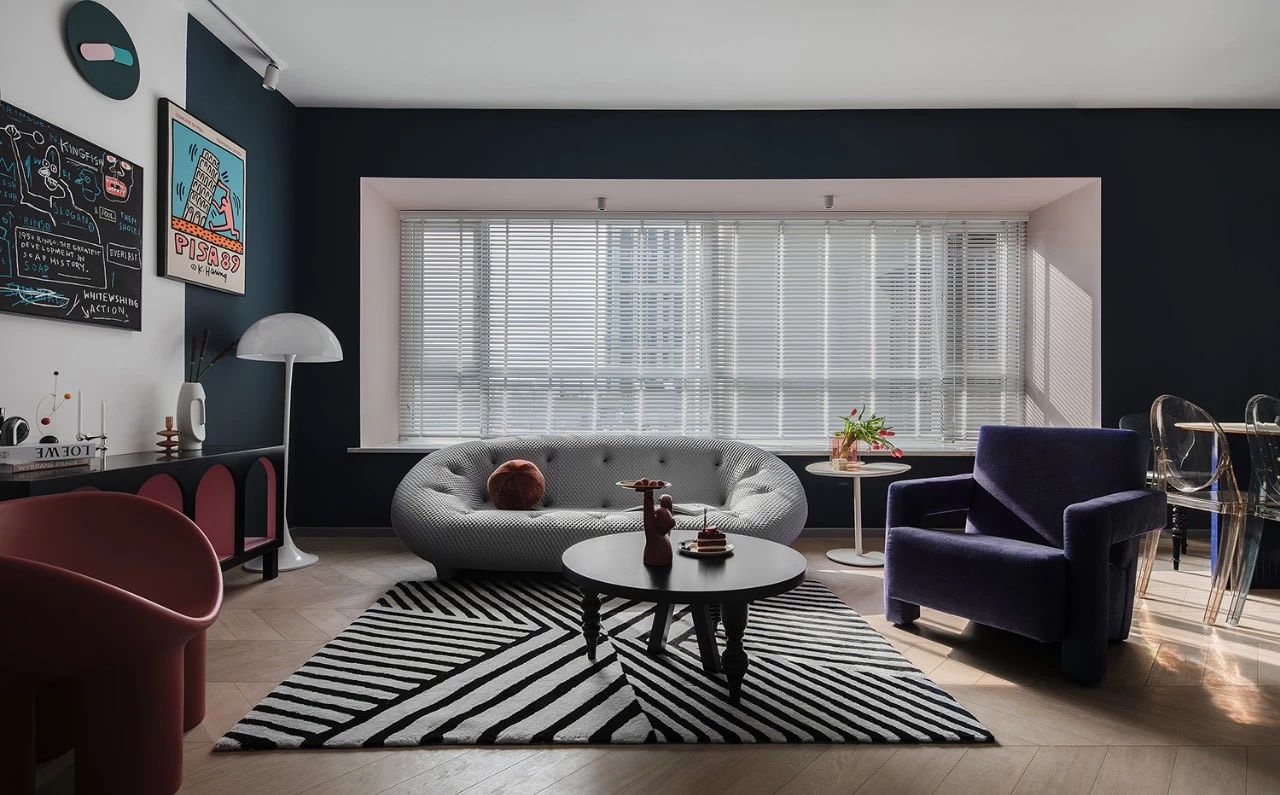 打破常规的客厅布置,将主沙发靠窗,可以更好的享受阳光,同时相比横放于客餐厅之间,空间更为开阔。