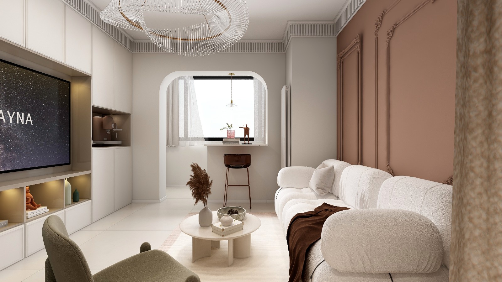 本案户型一室一厅一厨一卫。客户是一对新婚夫妻。客户比较喜欢简约法式风格。整体色彩明亮和带一些奶油风。