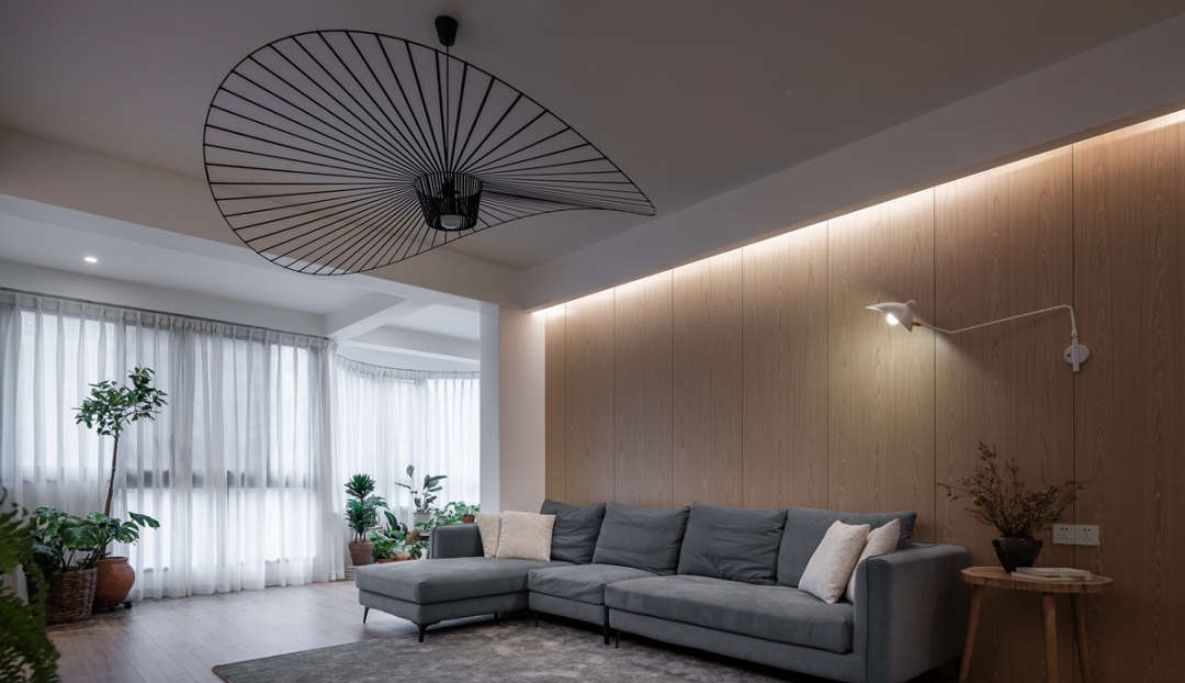 客厅放弃满吊,在客厅两边采用漫反射灯槽,主灯用超大号帽子灯来增加空间感,客厅的设计为了空间效果,这次放弃复杂与琐碎的设计,外加阳台的融入,以及质感很好的棉麻窗帘,空间舒适度以及灵活性的变化集一体 。