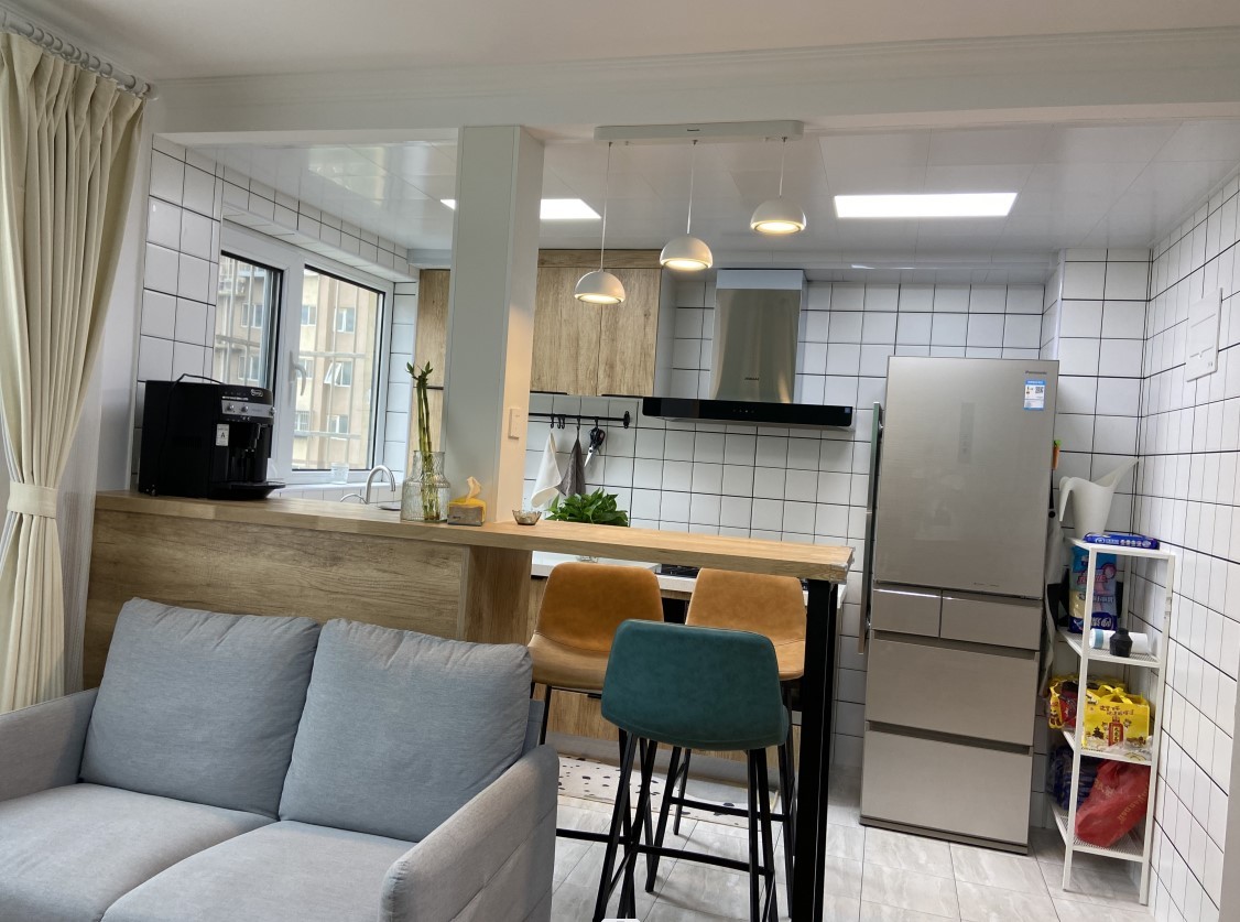 房子户型两居室,原房客厅比较小,业主平常做饭较少,接受开发式厨房,打通后整个格局就显得宽敞多了。