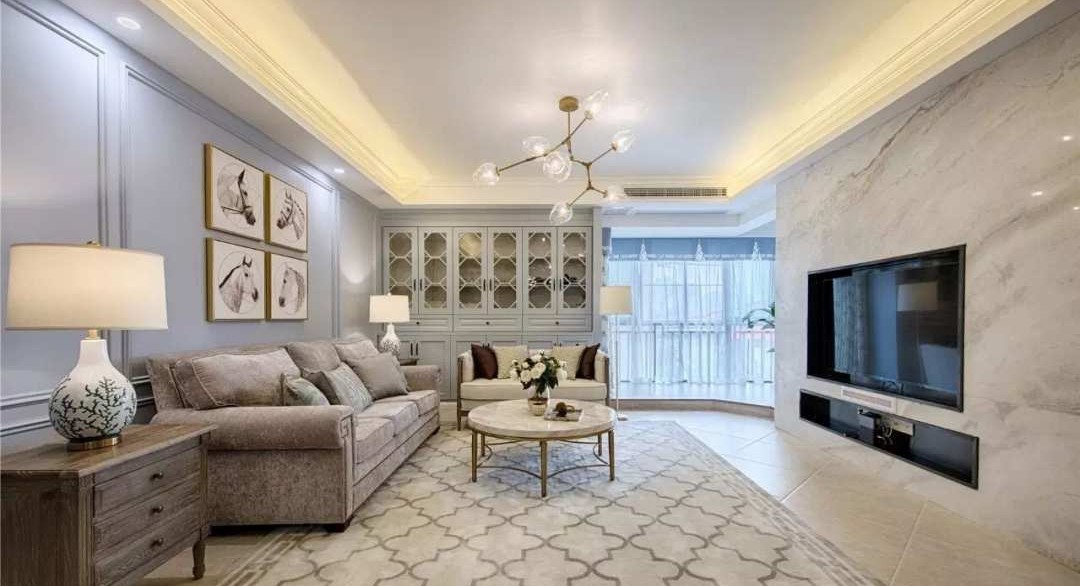 主色调以清雅风信子灰蓝为主调,金色、灰色、米色为辅助色,通过这一组淡雅的颜色搭配,营造出一个清雅舒适的空间坏境。 公共区域因为是大空间,在配饰上整体走偏国际一点的路线,到卧室根据个人年龄和喜好的不同,色彩和风格上有所不同。整体家具以木作打底,在木作和面料上有点小心思。