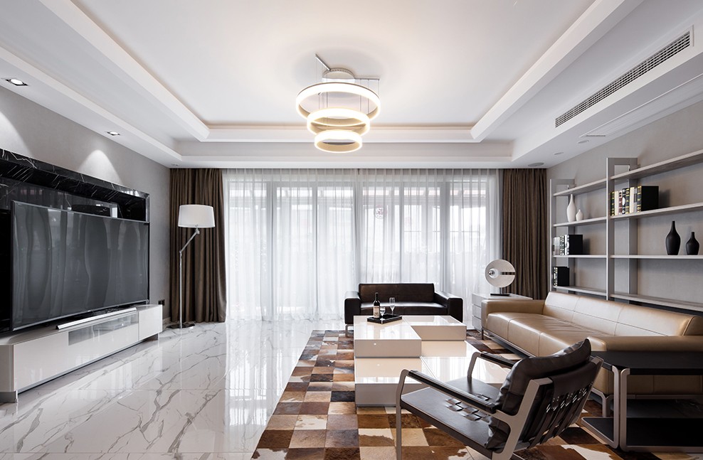 客厅家具的选用上不要以深色为主,深色的家具会显得压抑,而浅色系的家具使客厅内的空间更加宽敞,在一定程度上也提升了室内的采光感。还可以在客厅加上镜子,利用镜子反射自然光,从而使客厅显的更加明亮。