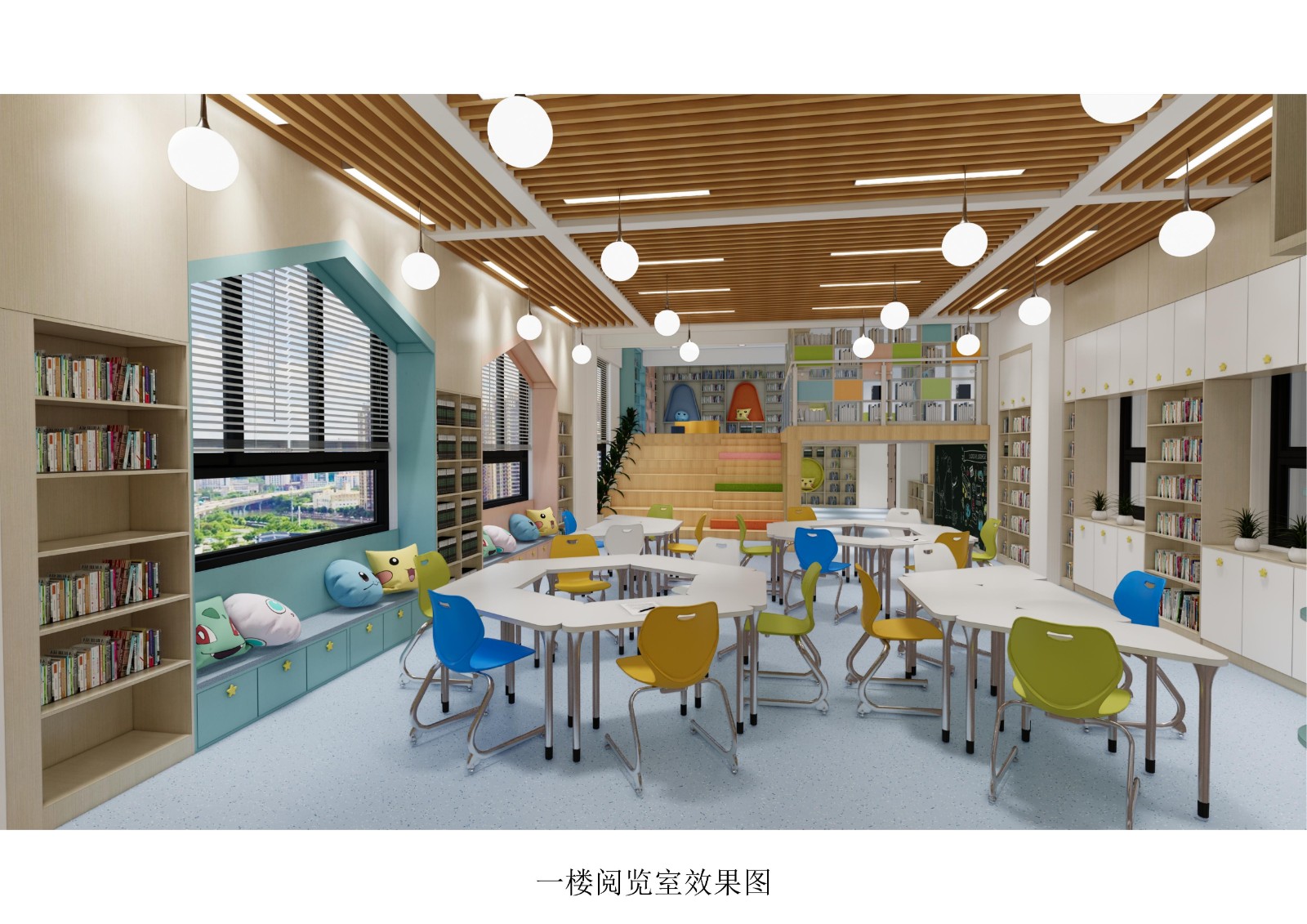 一层投影面积约150平方+新搭阁楼面积50平方。功能集图书阅览、娱乐为一体的设计空间。设计风格:以现代简约为主,配以原木色、嫩草绿、浅蓝色、橙色等鲜活颜色点缀。