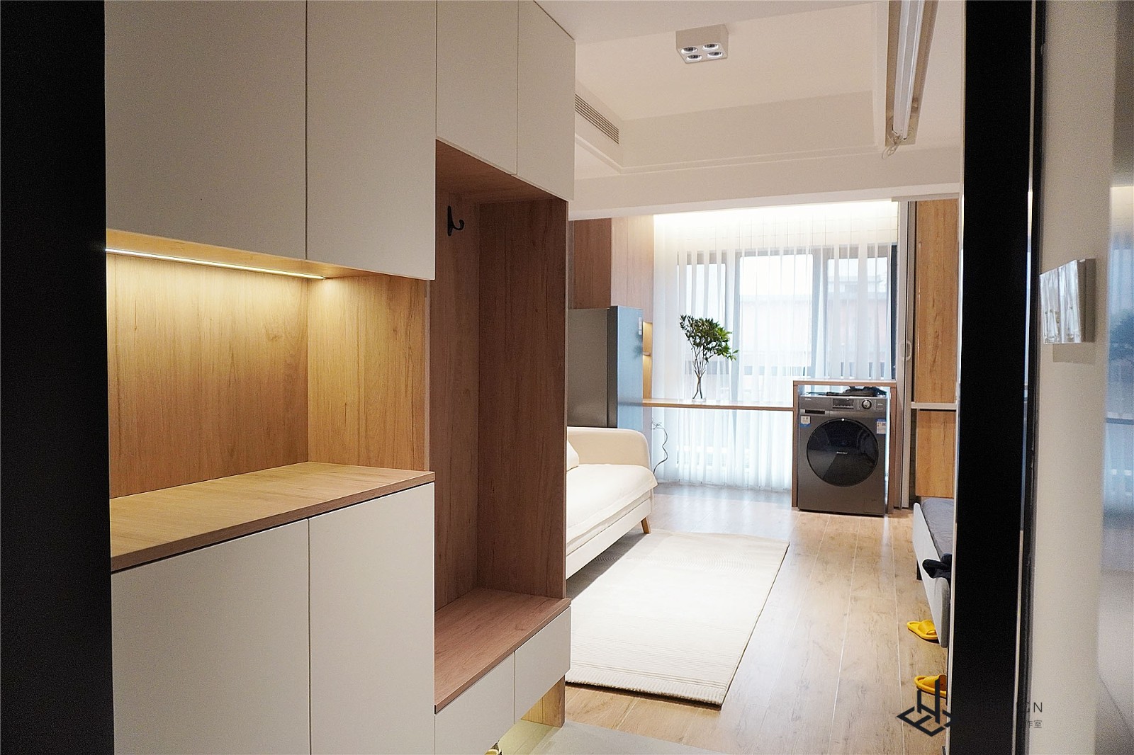 入户玄关鞋柜上下分层设计,暗藏带灯营造出精致的生活格调。