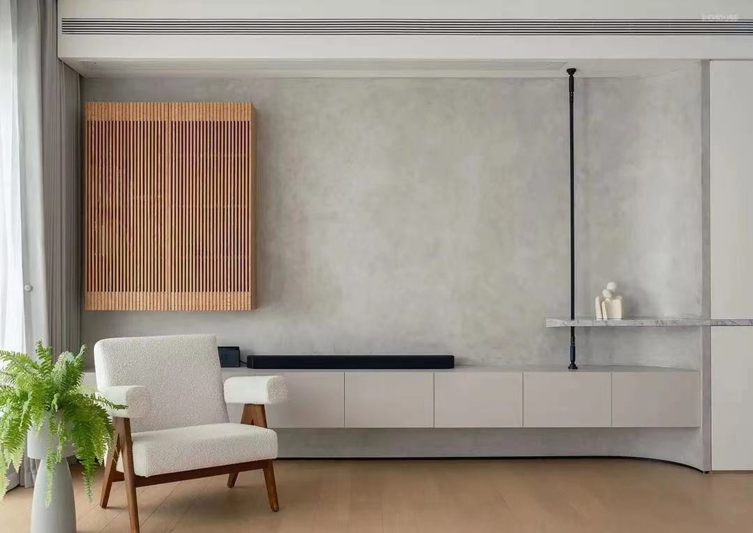 一道墙,承担了家中主要的收纳、茶水、视听机能,它是雕塑、是建筑,更是空间中的主角。