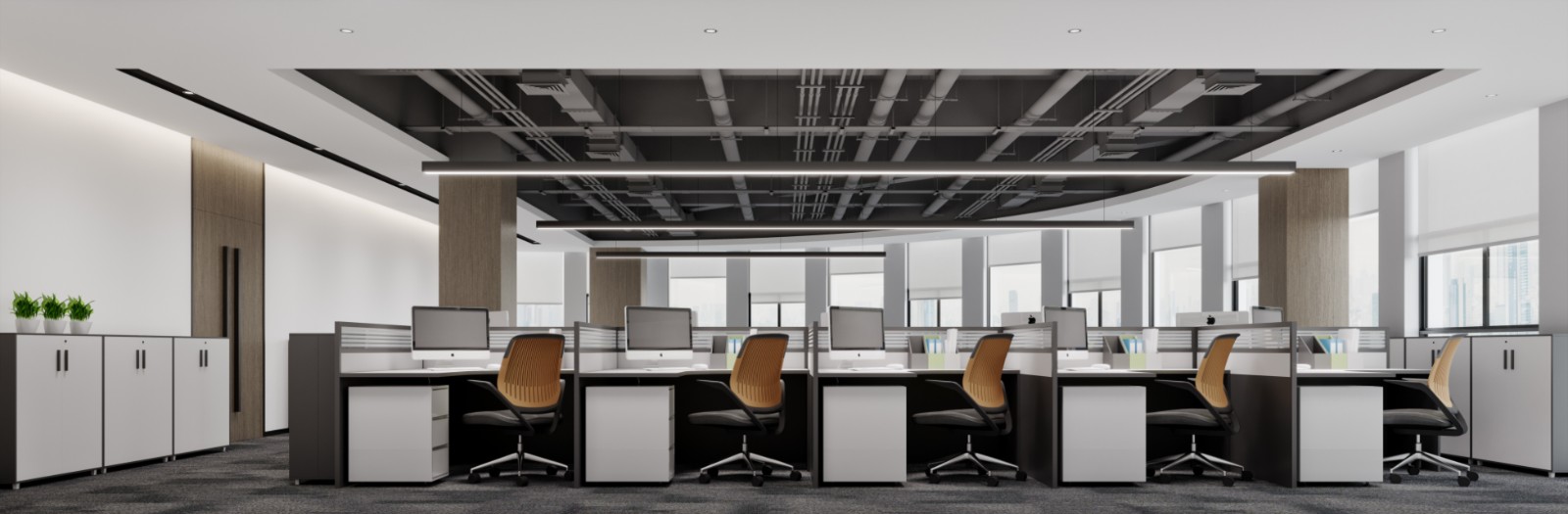 办公区域的空间,设计合理的方案,不同的办公室形态,设计的的侧重点是迥然不同的。根据办公室的功能需求,设计空间的大小。而现在休闲娱乐的空间设计也成为了设计重点,可以让员工劳逸结合,更好地提高办公效率。