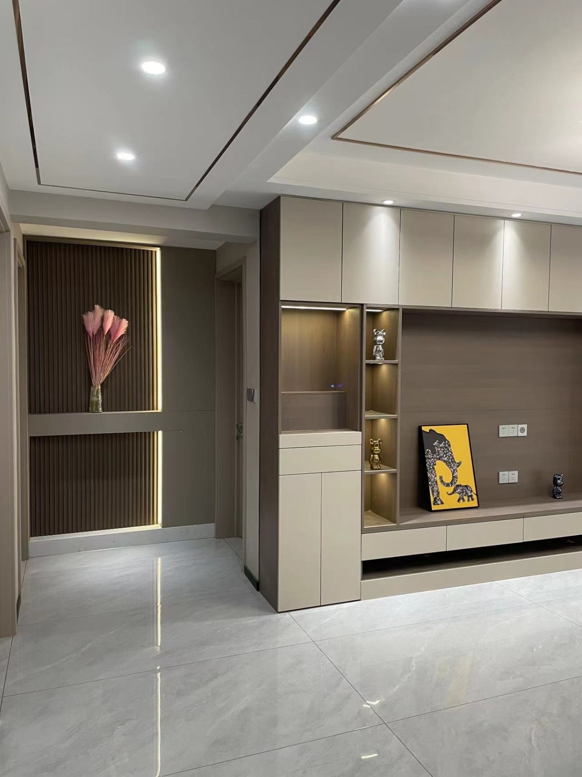 入户玄关柜的设计 ,进门给人温馨舒适色调感觉。