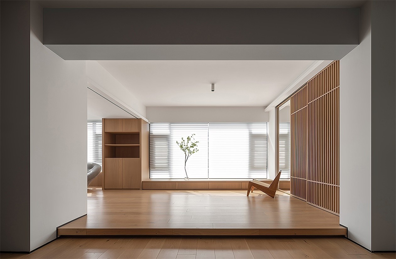 书房与其它区域存在着互动的关系 不同的隔断隐藏着相应的收纳机能 客厅旁边的区域被赋予多变的可能性