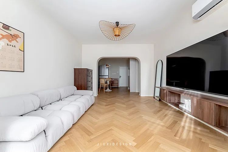 原来的一间卧室打通之后,功能变更为客厅,整体的采光也得以提升。