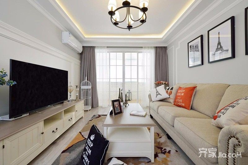 以洁白色减少视觉碎片的同时,增强视觉可用空间。对圆润的有限利用,以及对直线的利用与装饰也有助于创造整洁,温馨而快乐的客厅。