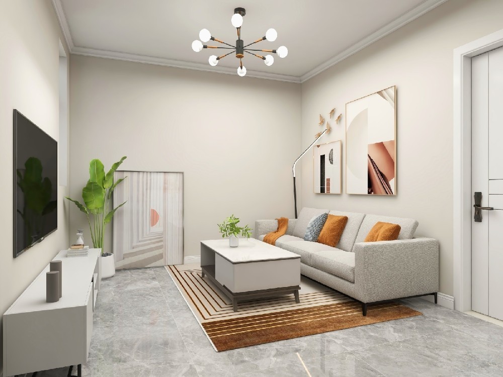 客厅整体色调为米色,接近自如。