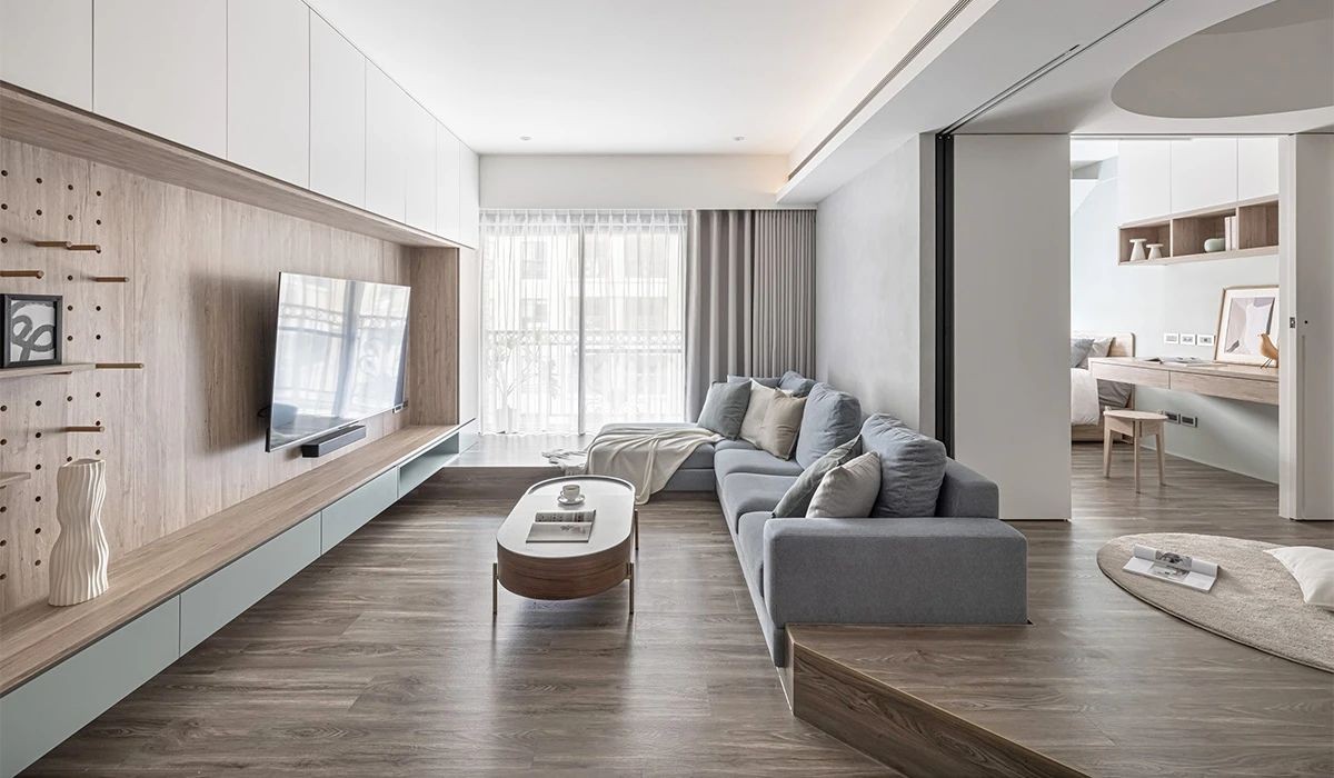 为拓增面积有效利用空间,从多功能室增高的地板流向 一眼可见设计之精细微妙,不仅使单一区块展现了***机能性 与沙发区成为一席 L 型卧榻,巧妙串连并连动此地域 毫无任何畸零地产生,甚而将地板幻化为沙发底座 恰好形塑为一体成形坐卧区,放大所有空间利用