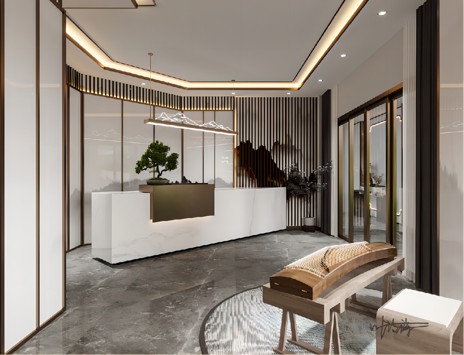 新中式的前台,端庄不失美感