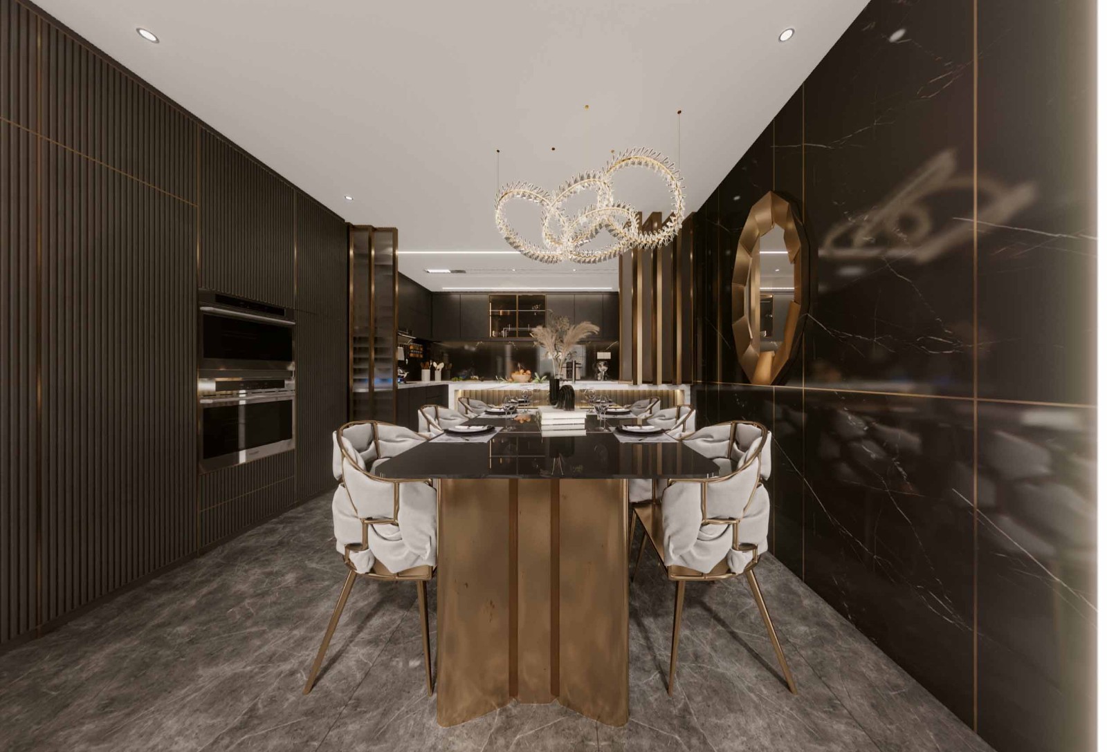 半开放式的厨房设计增大了餐厅与厨房彼此的空间感,中西厨的结合实用且美观