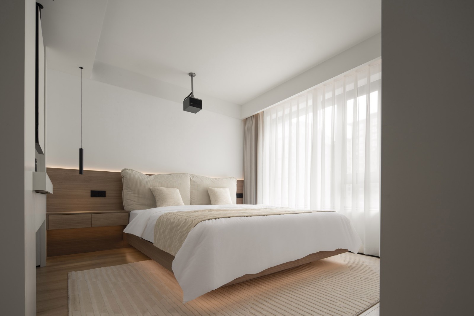 主卧配色延续白+木作为主调,配合柔和的灯光,安静柔美,非常适合休息