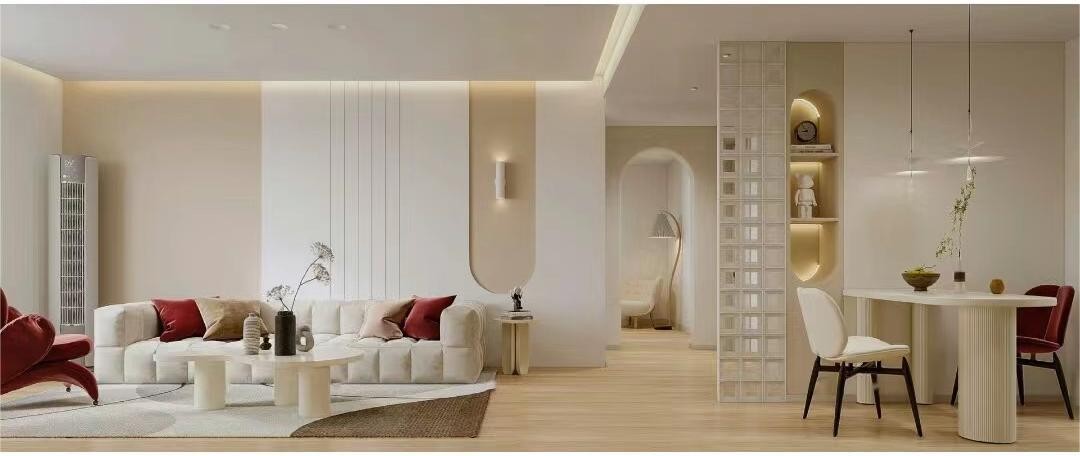 奶油色是一种淡淡的奶咖色,在米白色与奶咖色之间的色系,奶油色是一个低饱和度的配色风格,在此基础上,再搭配米色、暖灰色、原木色等其他饱和度比较低的色彩,***再用一些带有重色的家具、木料或墨绿的植物,起到对比和突出的视觉效果,奶油色可以和现代极简,侘寂,日式,法式等灵活的结合。