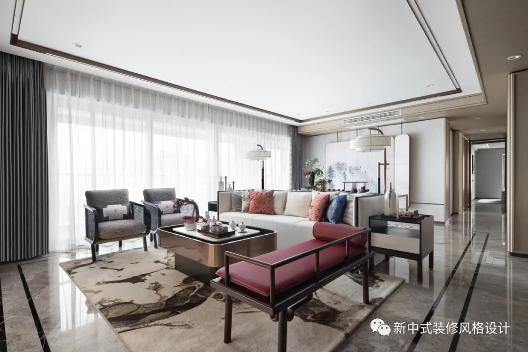 180平新中式装修设计,大横厅通透敞亮,主卧书房以屏风隔断,太有意境了!
