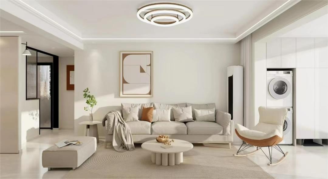 客厅整体浅色调,用软装点亮空间。