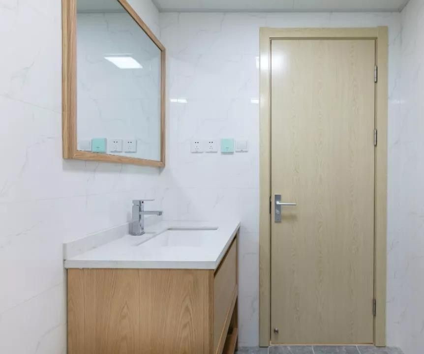厨房以木质的定制橱柜,搭配雅白的墙面与操作台,让做饭的空间也显得闲适自然而轻松。