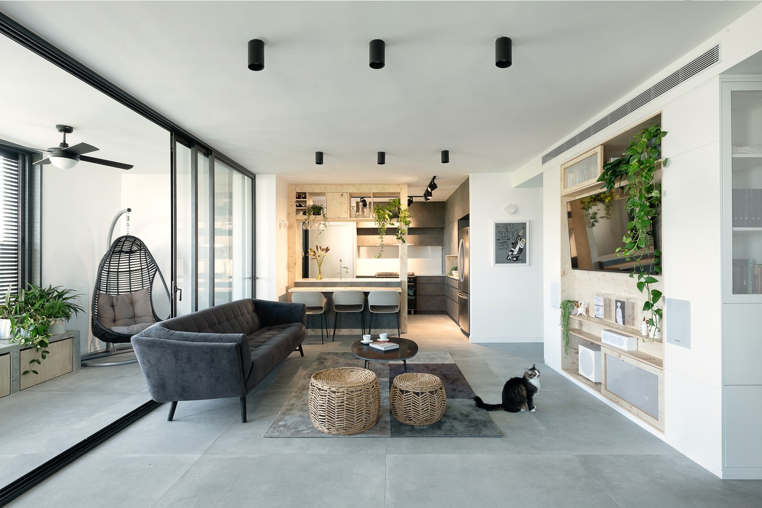 设有起居室,厨房,用餐区,阳台,4间客房,2间浴室,储藏室和猫窝小房间。装修前公寓分为两个单元 – 一个大公寓和一个单独的小单元。这座建筑从70年代开始陈旧,将房屋翻新设计,实现租户有一个宽敞而充满光线的公寓的梦想。