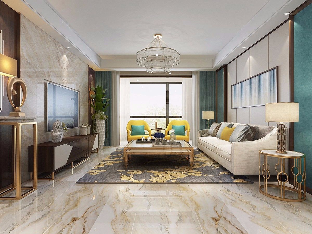 客厅风格为现代新古典,既现代又含蓄,配色稳重