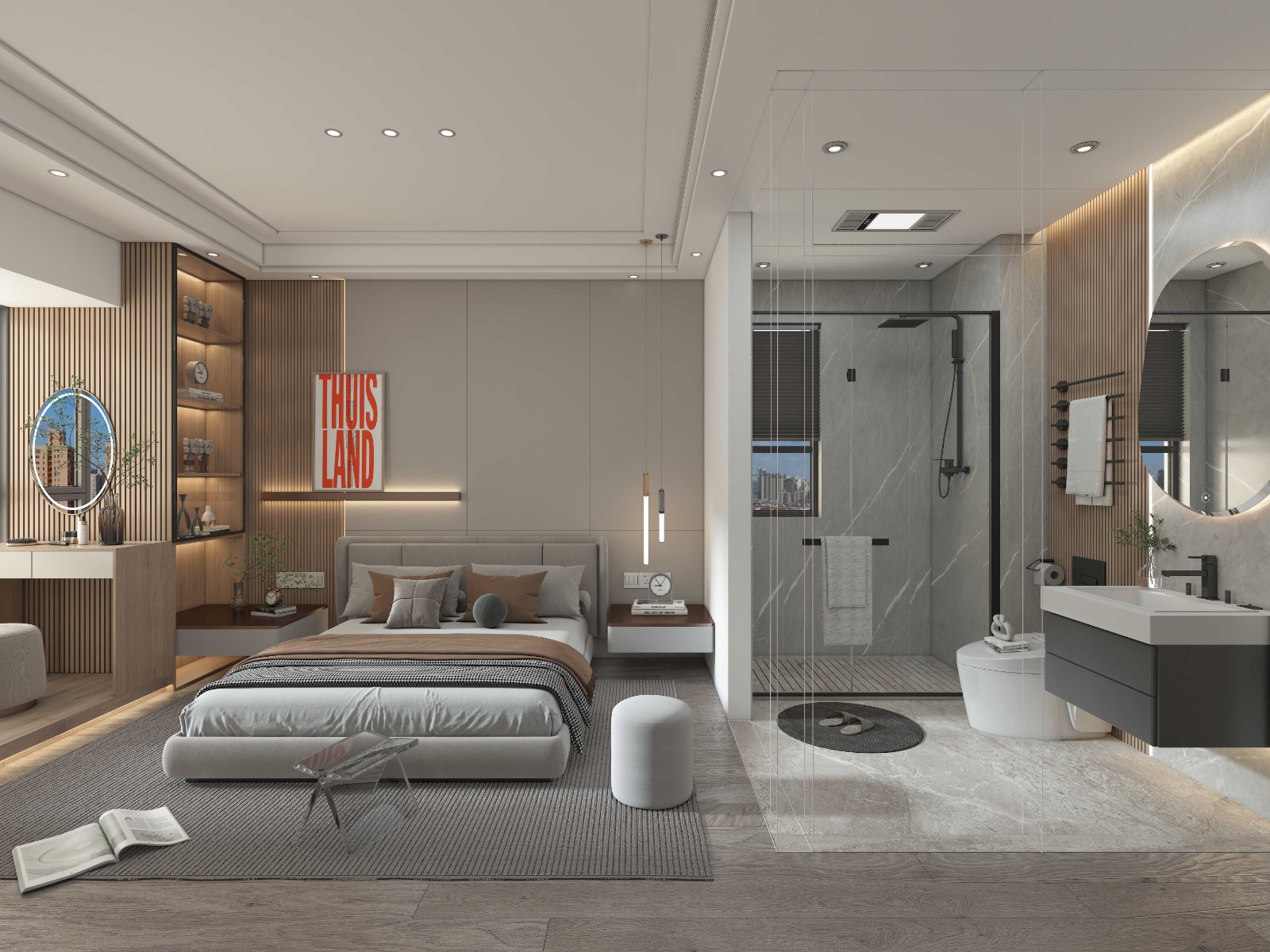 卧室是家人们休息和放松的地方。在现代简约风格的装修风格中,可以选择简单大气的床、床头柜和衣柜,并使用色彩单一、线条流畅的床品和窗帘,给人一种宁静、舒适的感觉。