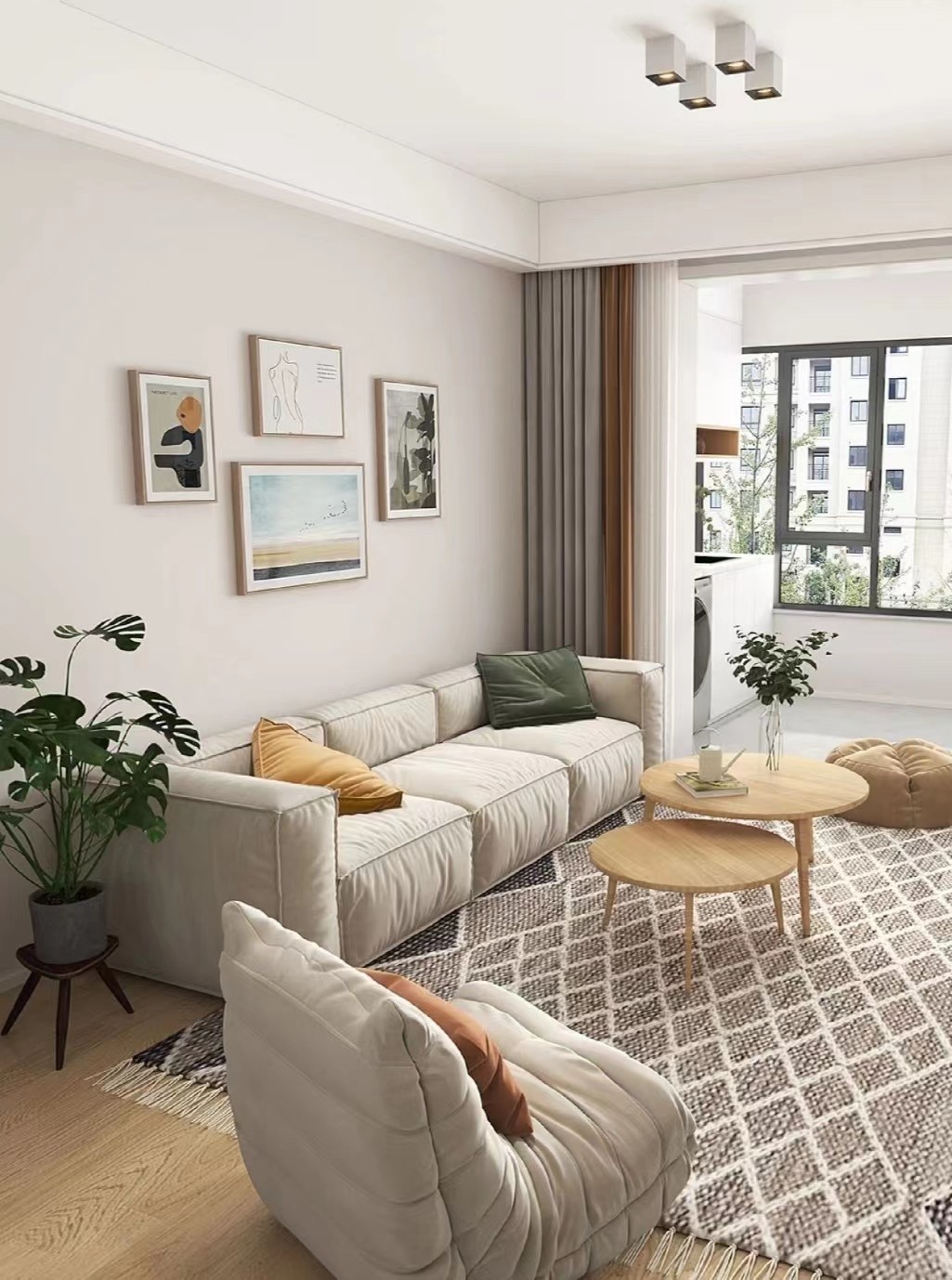 懒人沙发+实木圆形组合茶几