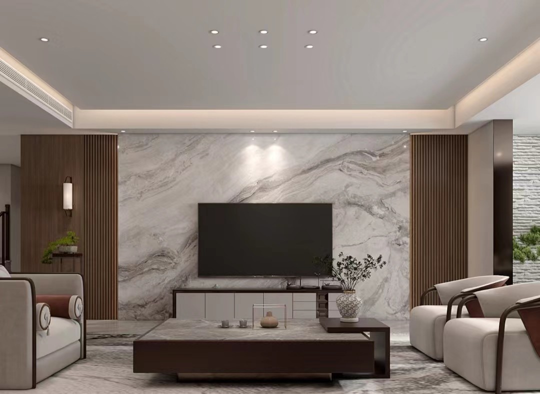客厅是传统与现代的碰撞,无主灯的设计结合古典中式的装饰元素,呈现出精彩绝伦,耐人寻味的视觉感受